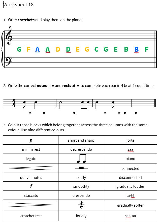 Learners understand, remember and do these exercises without being able to read music.