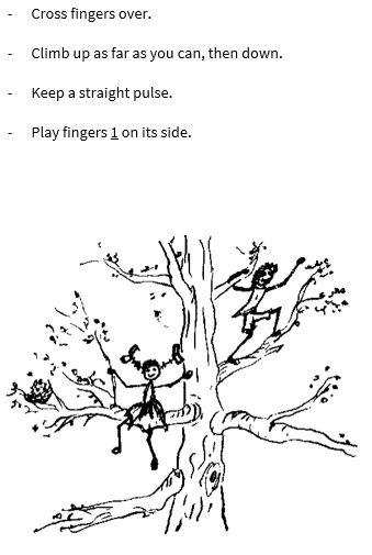Technique is taught and practised in an ever varied and interesting way by means of the Finger Games; the games and activities of the 10 princes and princesses (the LH and RH fingers) in the Kingdom of Music.