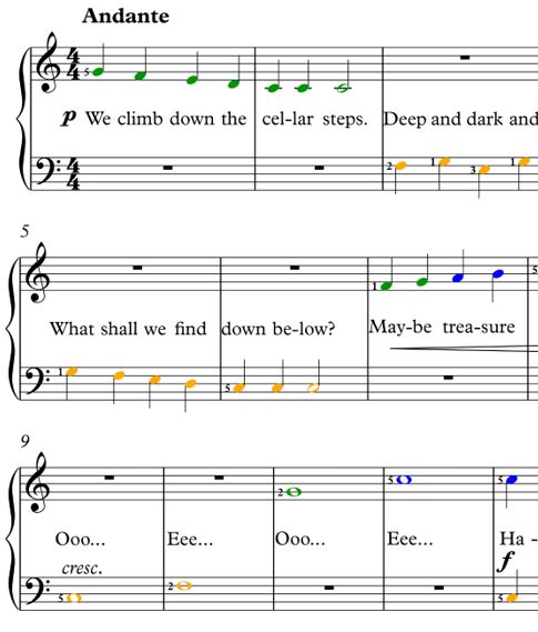 All the above aspects of teaching are brought together in the repertoire pieces which are composed to represent a learner’s progress through the story.