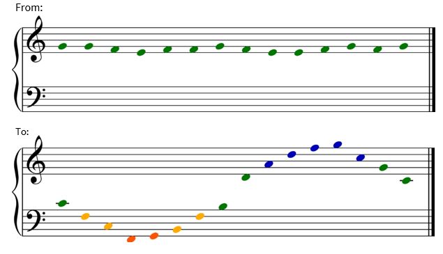 - Notes on the staff over 3 octaves.