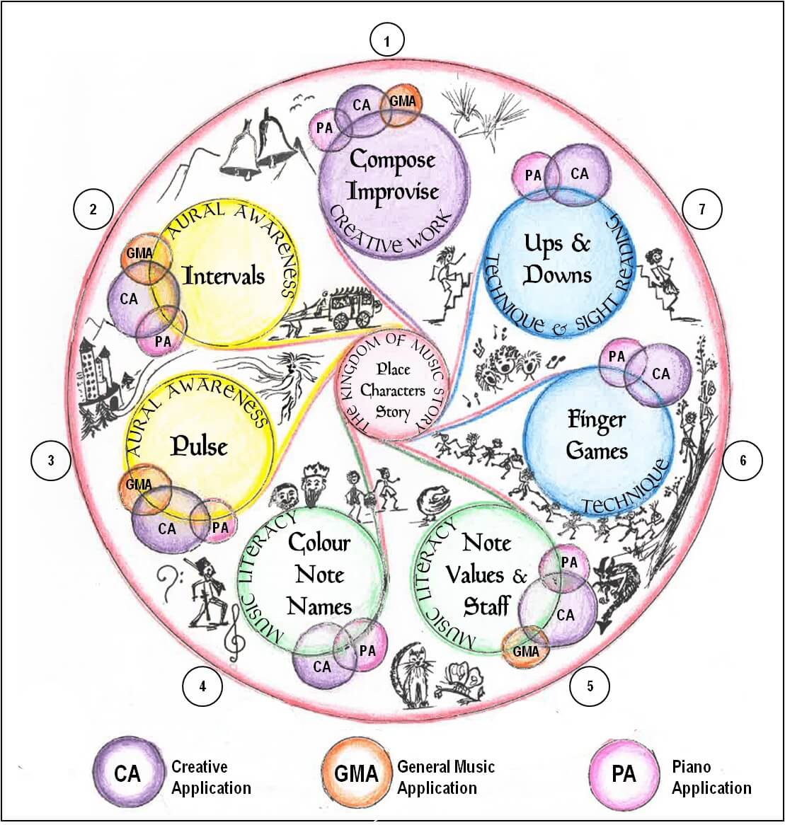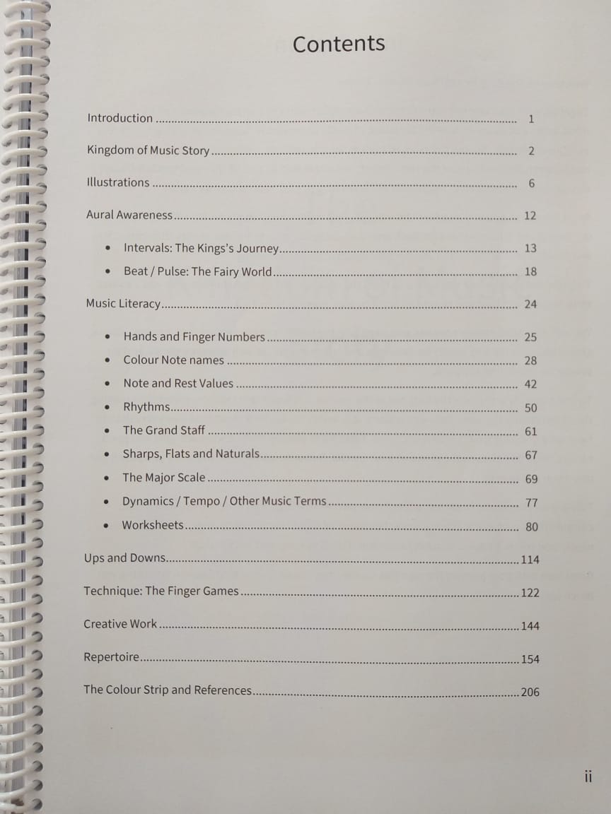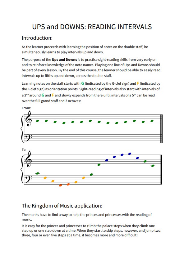 The Kingdom Of Music MapKing Semibreve, Queen Melody and their 10 ChildrenThe Entrance HallThe ForestNote name charactersLearning the Music StaffThe Kingdom Of Music Course ManualsTeacher’s ManualLearner’s Manual Age 7 to 8 YearsLearner’s Manual Age 9 to 10 YearsUp’s and Down’s Reading IntervalsExample of Theory WorkGraphic Representation of The Kingdom Of MusicThe Kingdom Of Music Class SessionKids Busy With a Class SessionLearners CompositionNote Name Characters Example 1Note Name Characters Example 2Drawing of Place III The MediantTeacher’s Manual Table of ContentsLearner’s Manual Table of ContentNote Dragon DCreative WorkNote Angel AFun with note cardsNote valuesDuetCompleting a theory work sheetColour Strip on Piano